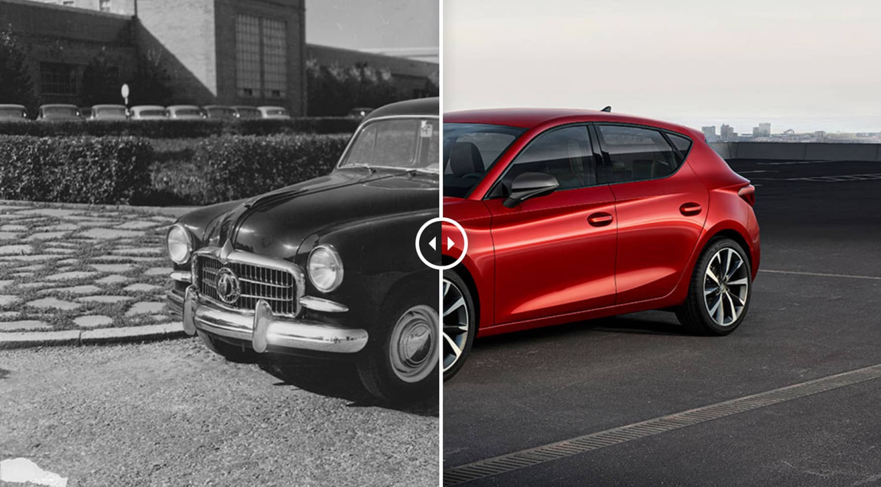 1. The first model vs the latest. In 1953, SEAT launched its first car, the 1400. 70 years later, the company's latest model, the fourth generation SEAT Leon, is a sign of the brand's evolution, though without losing its essence.