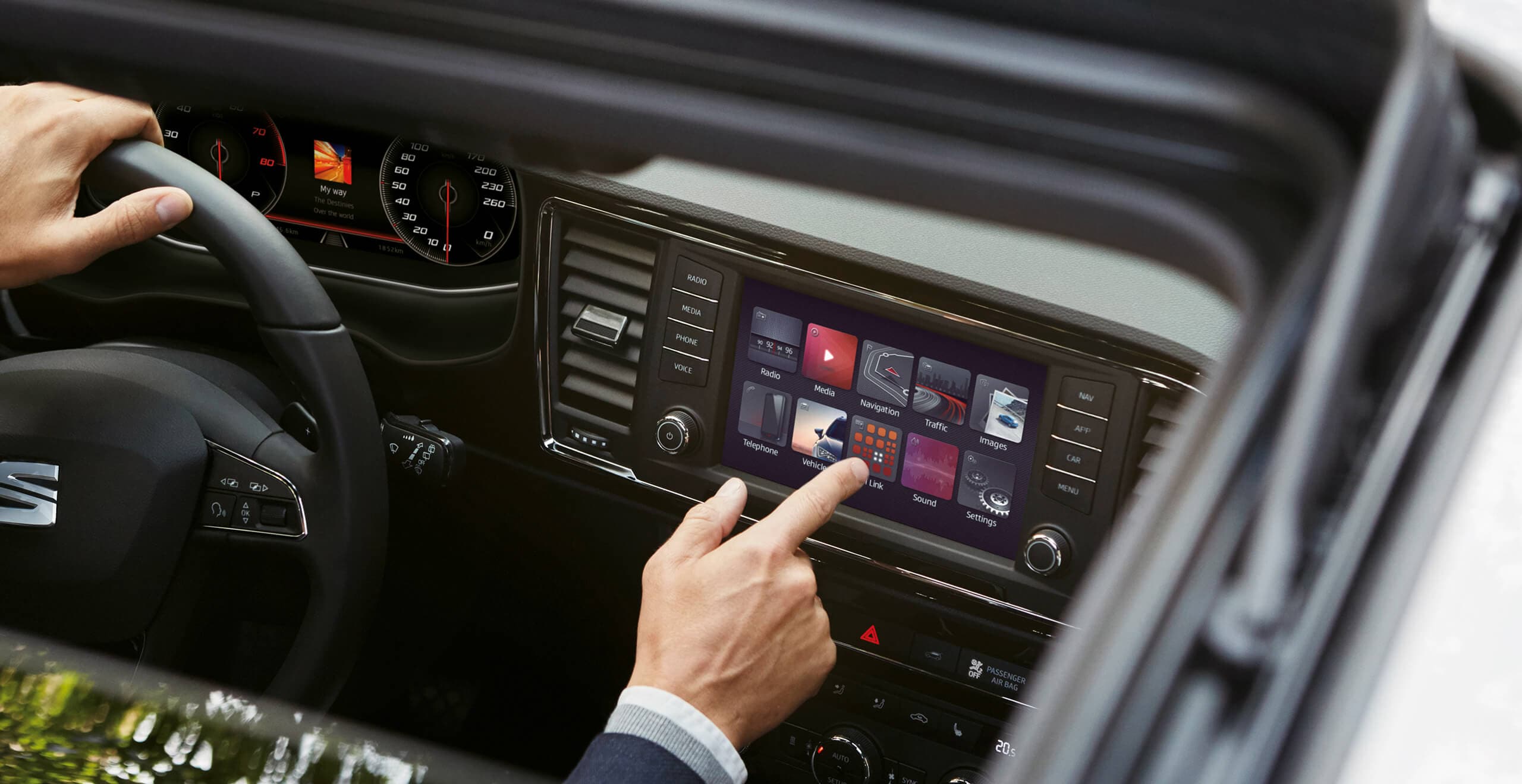 Getting started with CarPlay is as easy as, well, using your iPhone. All you do is connect it to your SEAT’s USB port, configure it once, and you’re good to go. You can control all your favourite apps from your steering wheel, or activate Siri and use voice commands to message your friends, find your way around, or choose music while you drive.