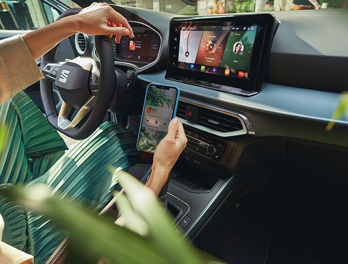 Person holding their smartphone checking SEAT CONNECT feature